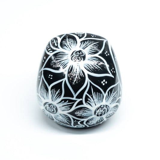 Juego de regalo de calavera de cerámica en blanco y negro con arte inspirado en el Día de los Muertos