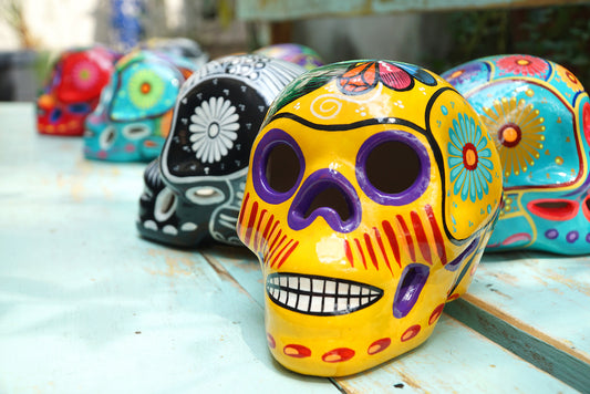 Venta al por mayor de calaveras de cerámica mexicana | Decoración del Día de los Muertos de tamaño mediano pintada a mano