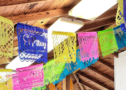 Banderines de plástico mexicanos de papel picado | Guirnalda de 5 metros (16 pies) con 10 banderas grandes