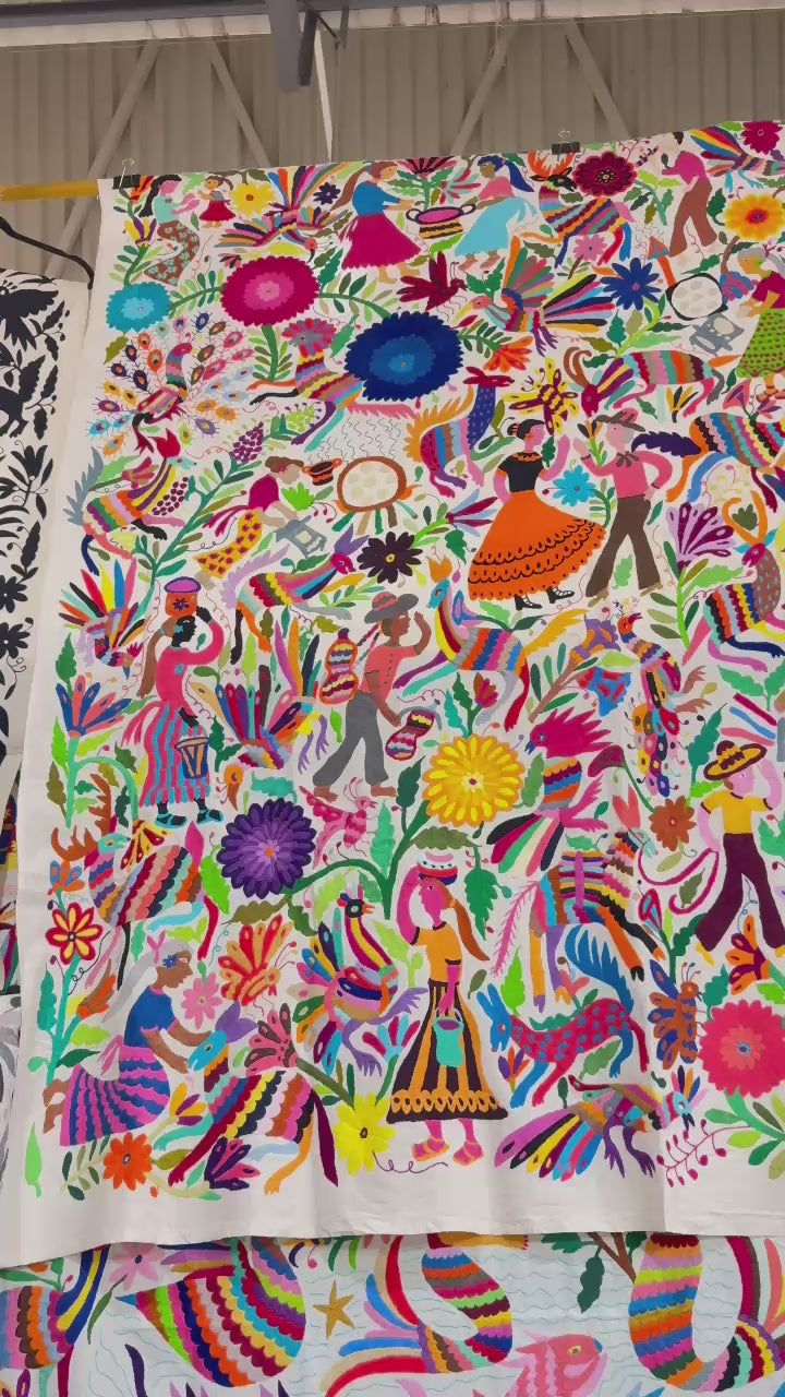 Otomi Tapestry Extra Large Mexican Hand Embroidered Tenango Wall Art - FIESTA
